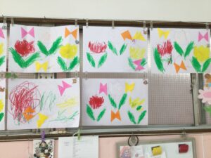 昨日のチュウリップの回りにちょうちょを貼りました。