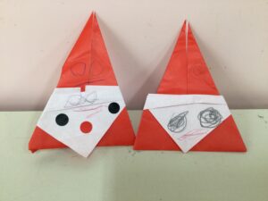 折り紙でサンタさんを折りました。