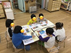 2025年12月24日きりん組 お餅つき楽しかったね 今日はお餅つきでした。 きりん組は鏡餅を作りました。もちが手にこびりついて『ベトベト〜』と騒いで?いましたが、楽しく作れました。今、乾かしています〜。1人1つ作れました。 ⭐︎鏡餅を作っている所は保護者ページを見てください。真剣なきりん組です! お餅をついたあとさっそく『お餅つき』の絵を描きました。 絵が上手になりましたね! 2025年12月24日14時18分