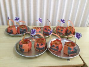 2022年10月31日きりん組 ハロウィン🎃 ぎゅっての付録、かぼちゃのランタンを作りました。小さくて細かい作業でしてがハサミを上手に使い器用に線を切っていました😊可愛らしいランタンが出来ました✌️ 園庭でさつまいも洗いをしました。 2022年10月31日13時25分