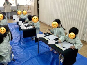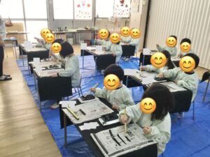 2026年04月11日きりん組 習字と絵画 今週は初めての習字と絵画がありました😊 習字では新聞紙で出来た練習用紙に書きました💕 最後に半紙に書きましたよ✨ 絵画では絵の具の使い方を練習しました🍀 出せたら虹を描いてみましょう🌈 少し緊張していましたが講師の先生に道具の使い方を教わり楽しく取り組めました。 次回が楽しみですね♪ 2026年04月11日10時49分