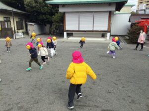 2026年02月13日ぱんだ組 りす組 散歩 ぱんだ組とりす組で散歩に行きました! 北糀谷中央公園に行ったのですが空いておらず…。 神社に変更し遊びました♪ ぱんだ組、りす組一緒に走ったりして楽しく遊びました☺️ たくさん遊んだので保育園へ帰ります! 行きも帰りもぱんだ組がリードをし、りす組を守りながら歩きました ぱんだ組りす組、楽しく歩き、楽しく一緒に遊ぶことができました! 2026年02月13日13時49分