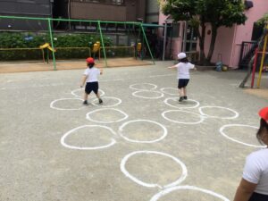 2021年06月02日体操教室 〜きりん組〜 今日は外で全身を使う運動をしました。 ジャングルジムを横歩き ボールを避けてダッシュ‼️ 疲れたぁ〜と。でも、楽しかったようです。 2021年06月02日13時39分